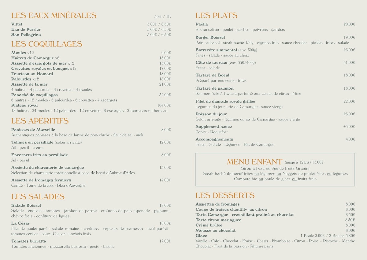 Welcome to Chez Boisset, a hidden gem nestled in the heart of Saintes-Maries-de-la-Mer. This charming eatery is celebrated for its welcoming atmosphere and delicious menu offerings, making it the perfect spot for families and food lovers alike. With a casual ambiance, Chez Boisset invites diners to enjoy a variety of meals at prices that won’t break the bank, particularly when compared to neighboring towns like Aigues-Mortes and Montpellier.